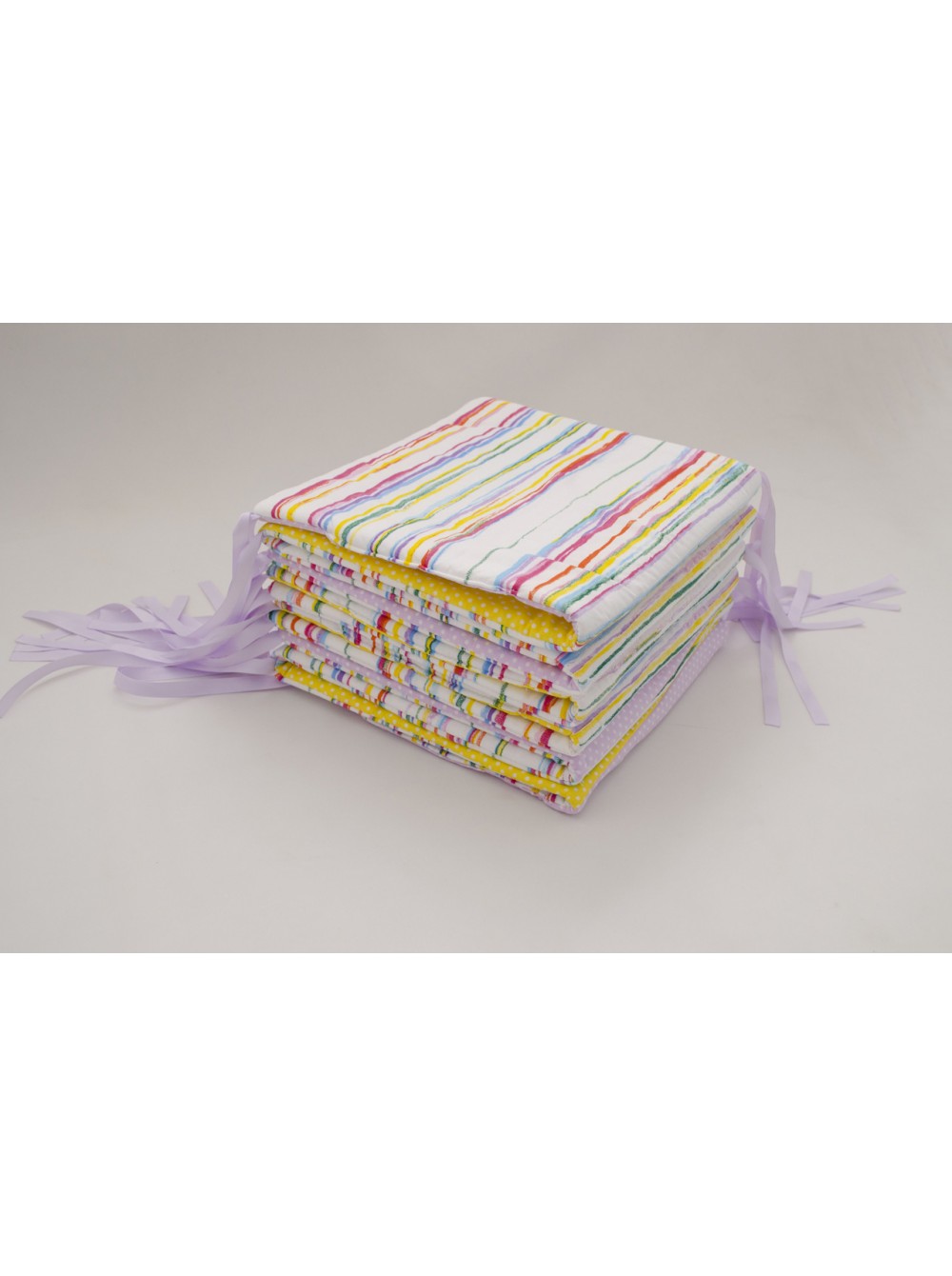 Бортики высотой 30 см, плоские, чехлы несъемные. Весь наполнитель надежно вшит, можно стирать целиком в стиральной машине.