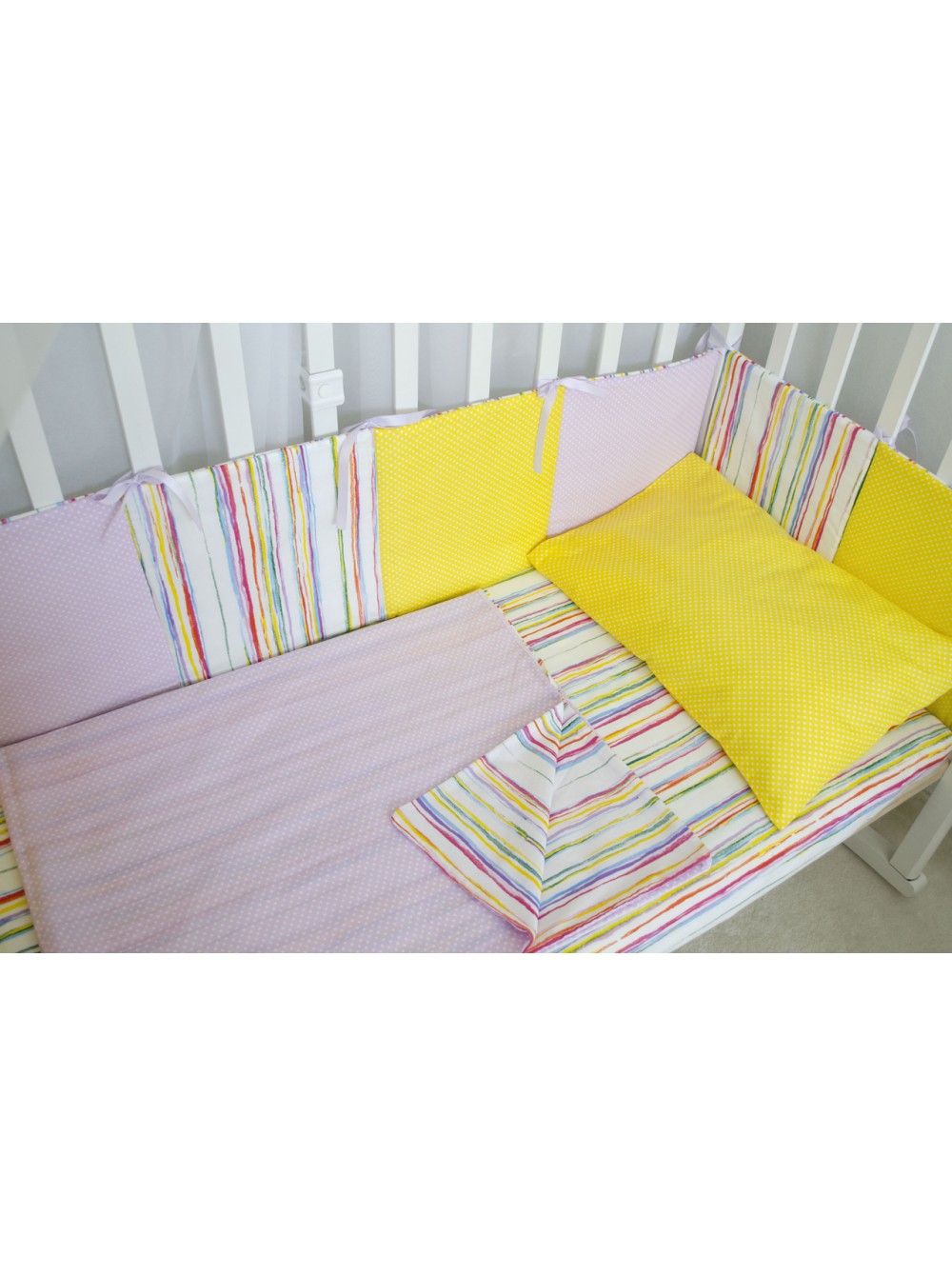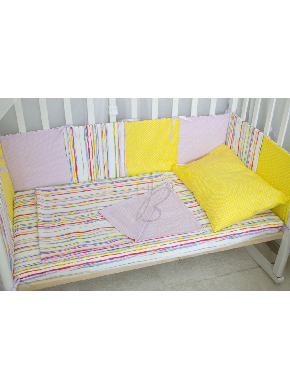 Комплект в кроватку (радуга с желтым)