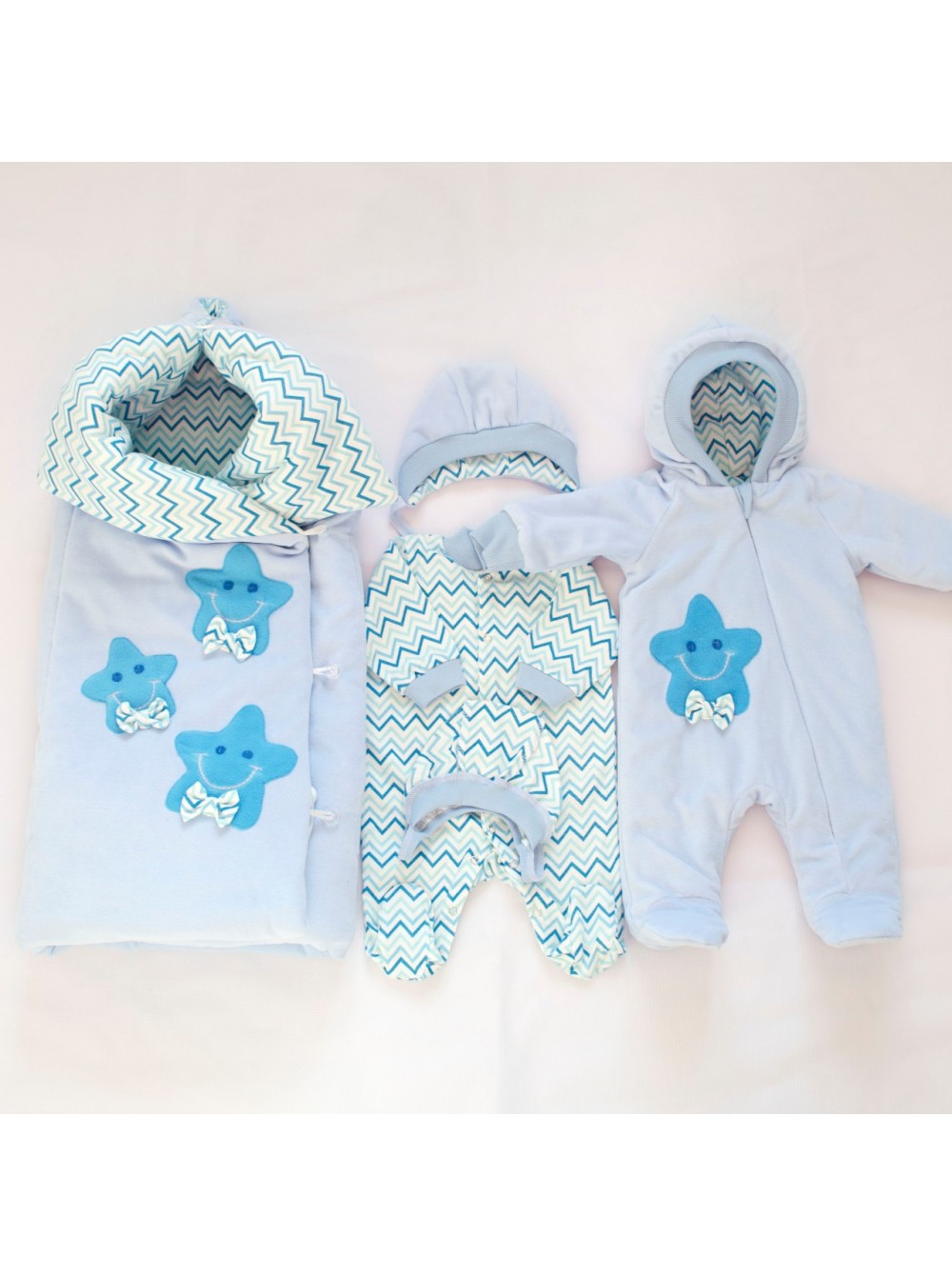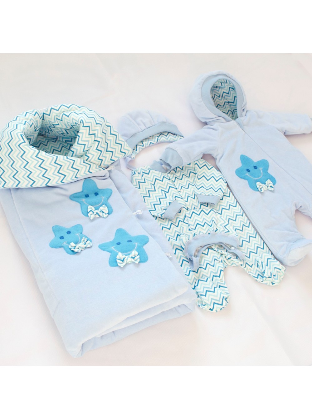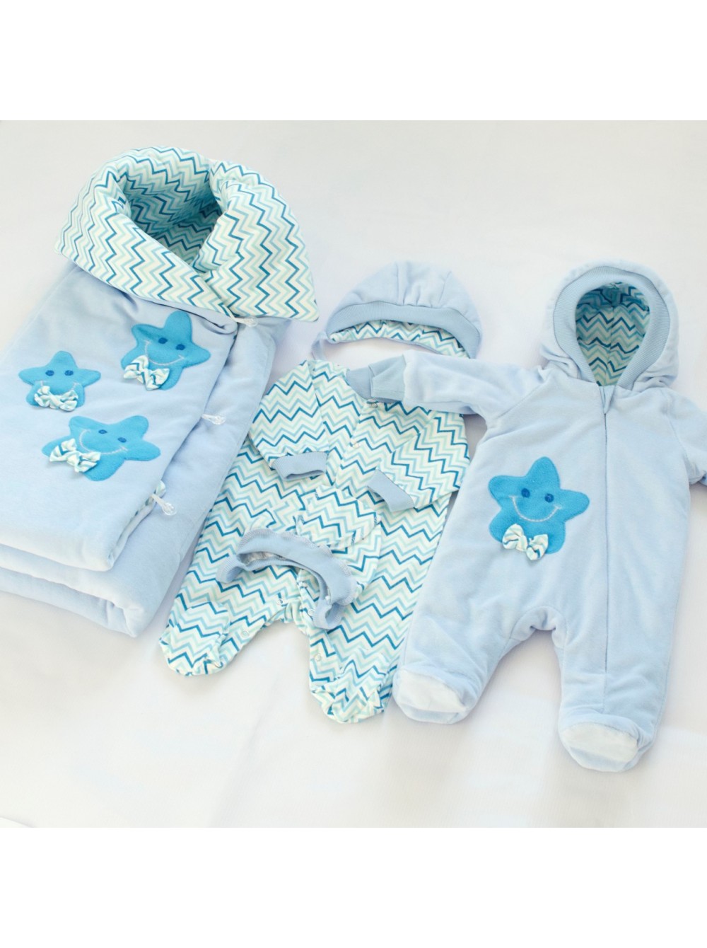 Комплект с комбинезоном "Пуговки" голубой велюр