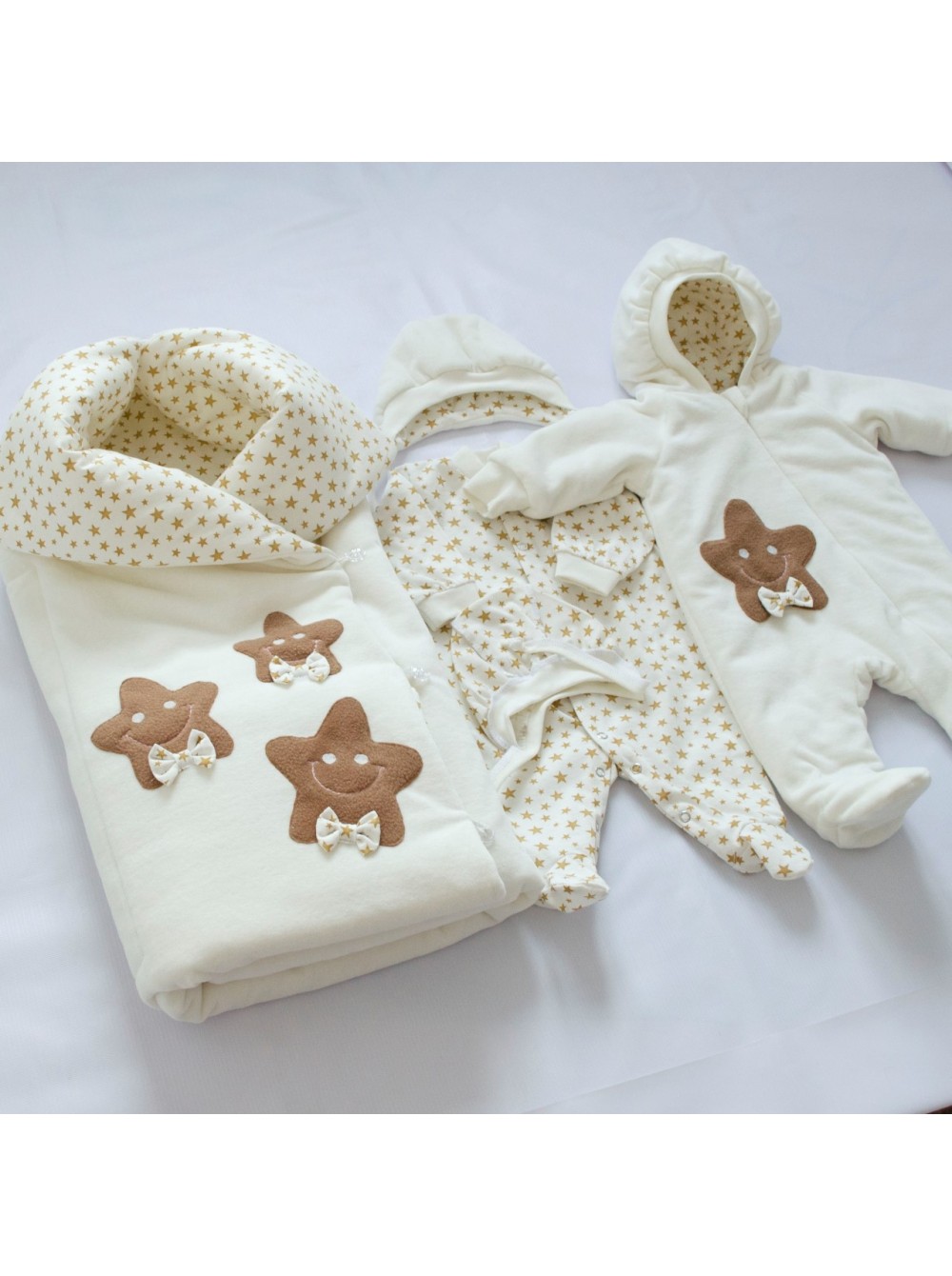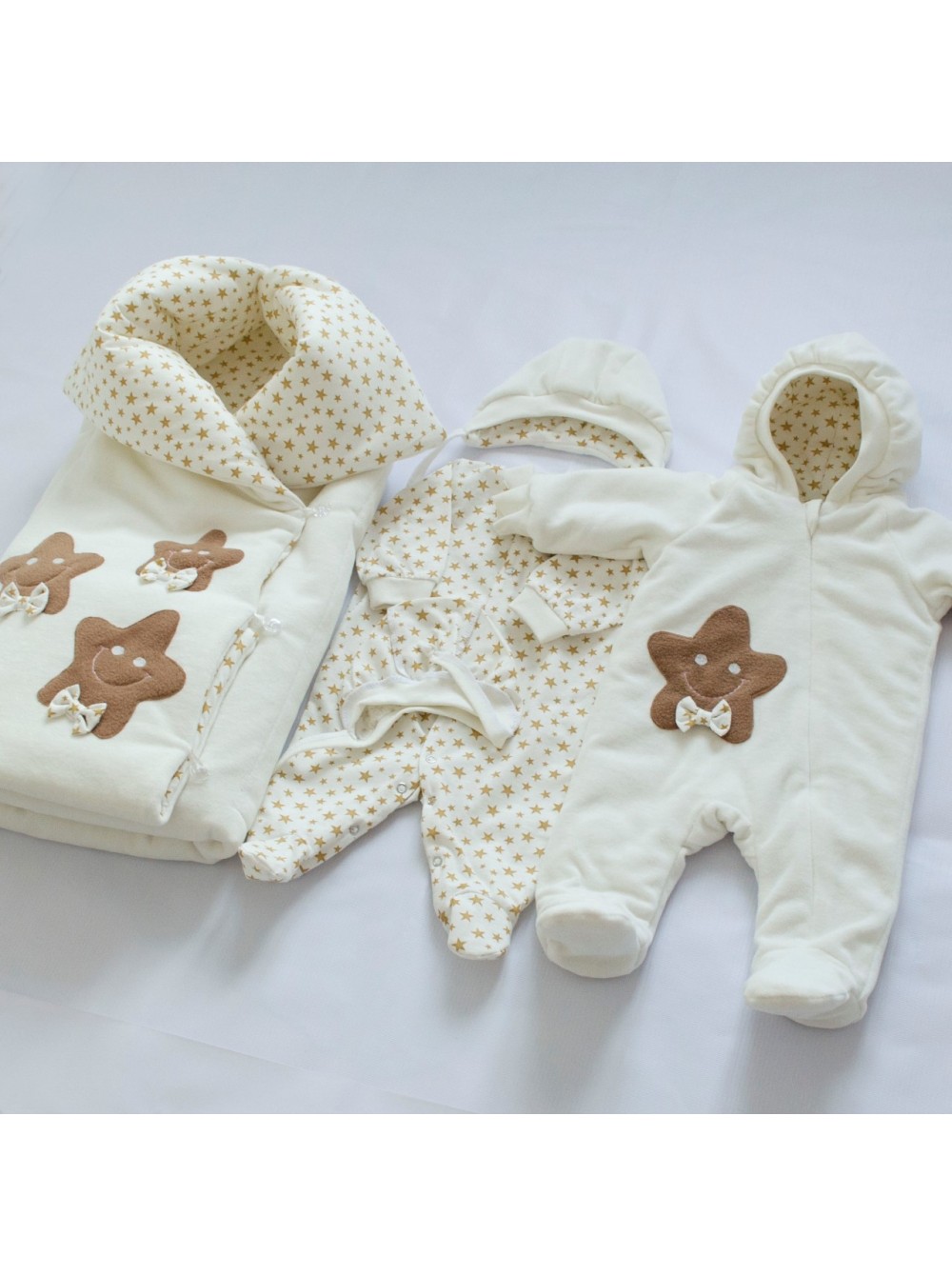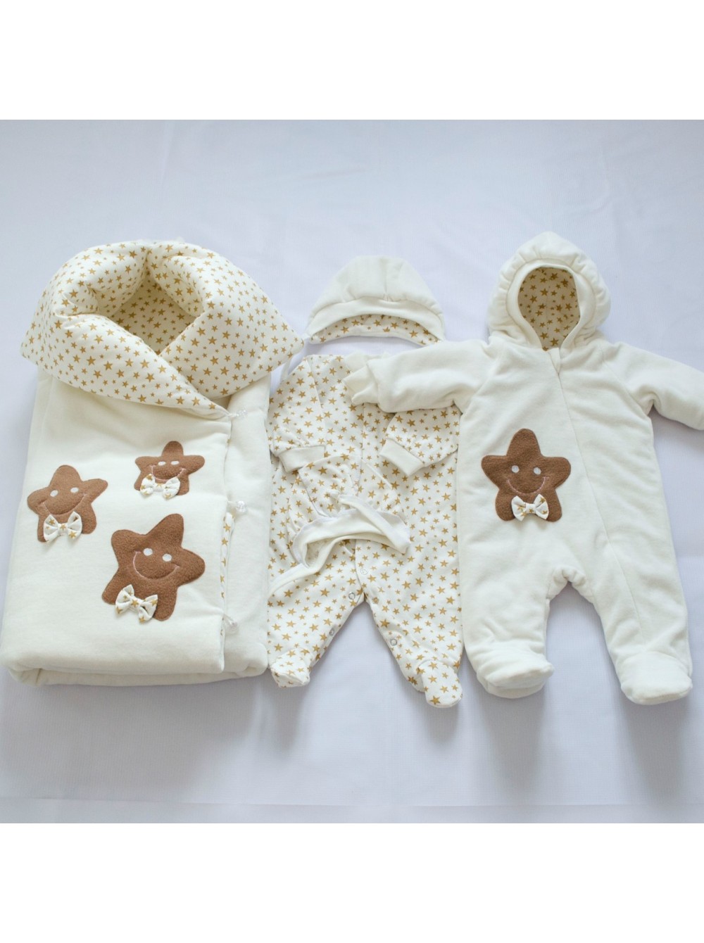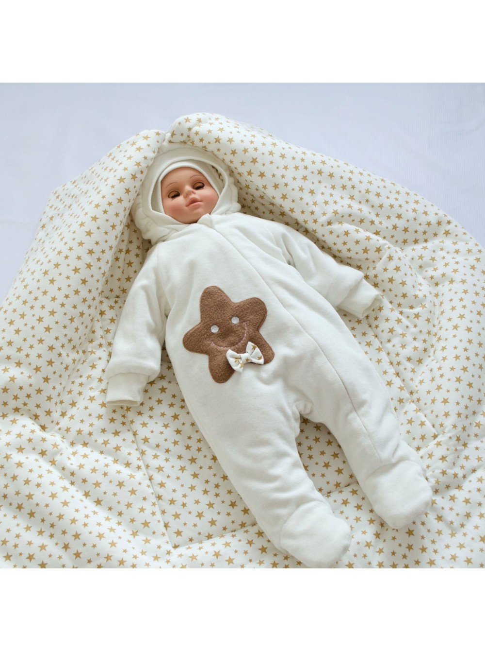Комплект с комбинезоном "Пуговки" молочный велюр